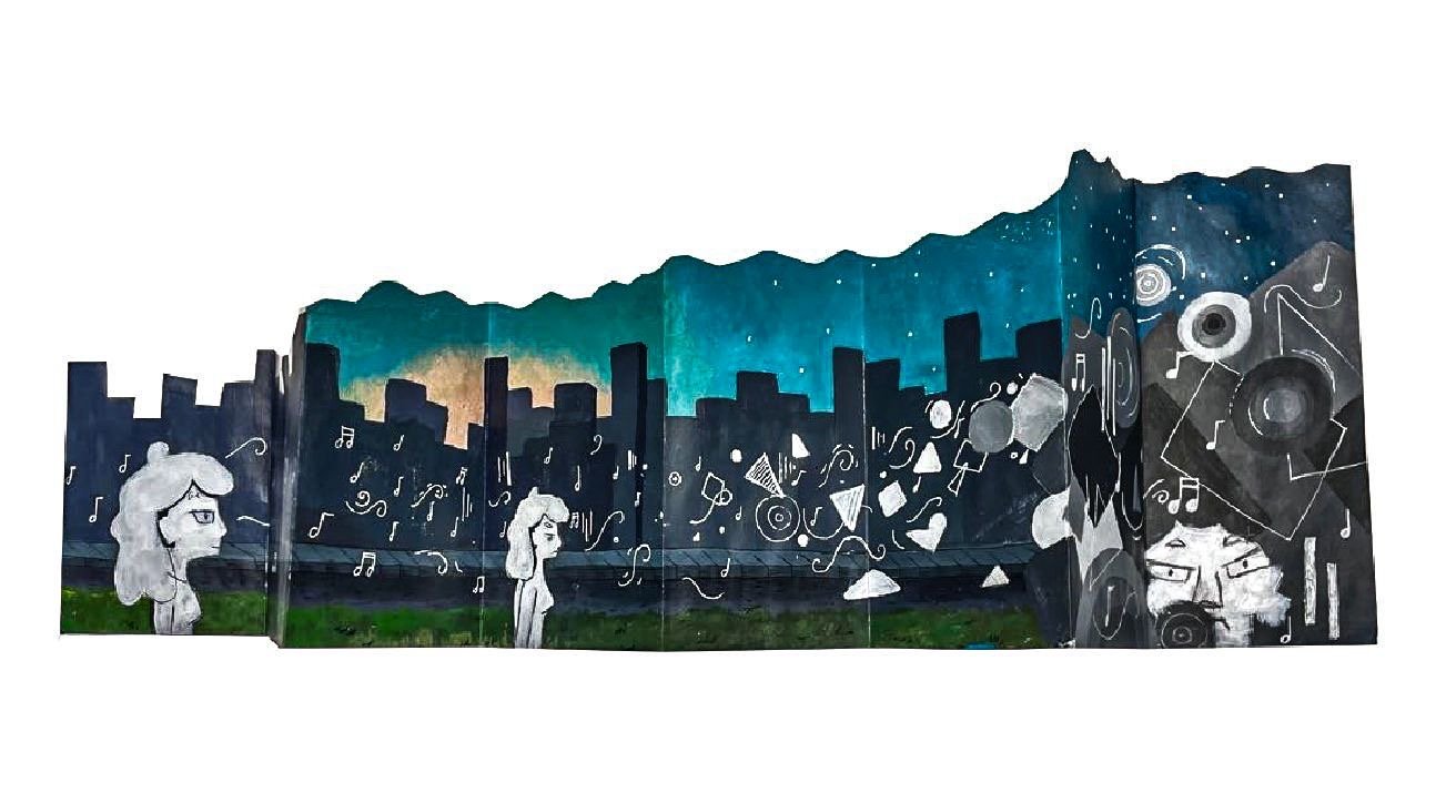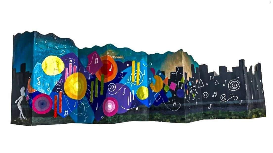 Earworm, Artist Book, acrylic and ink on accordion folded paper, 6”x 18”