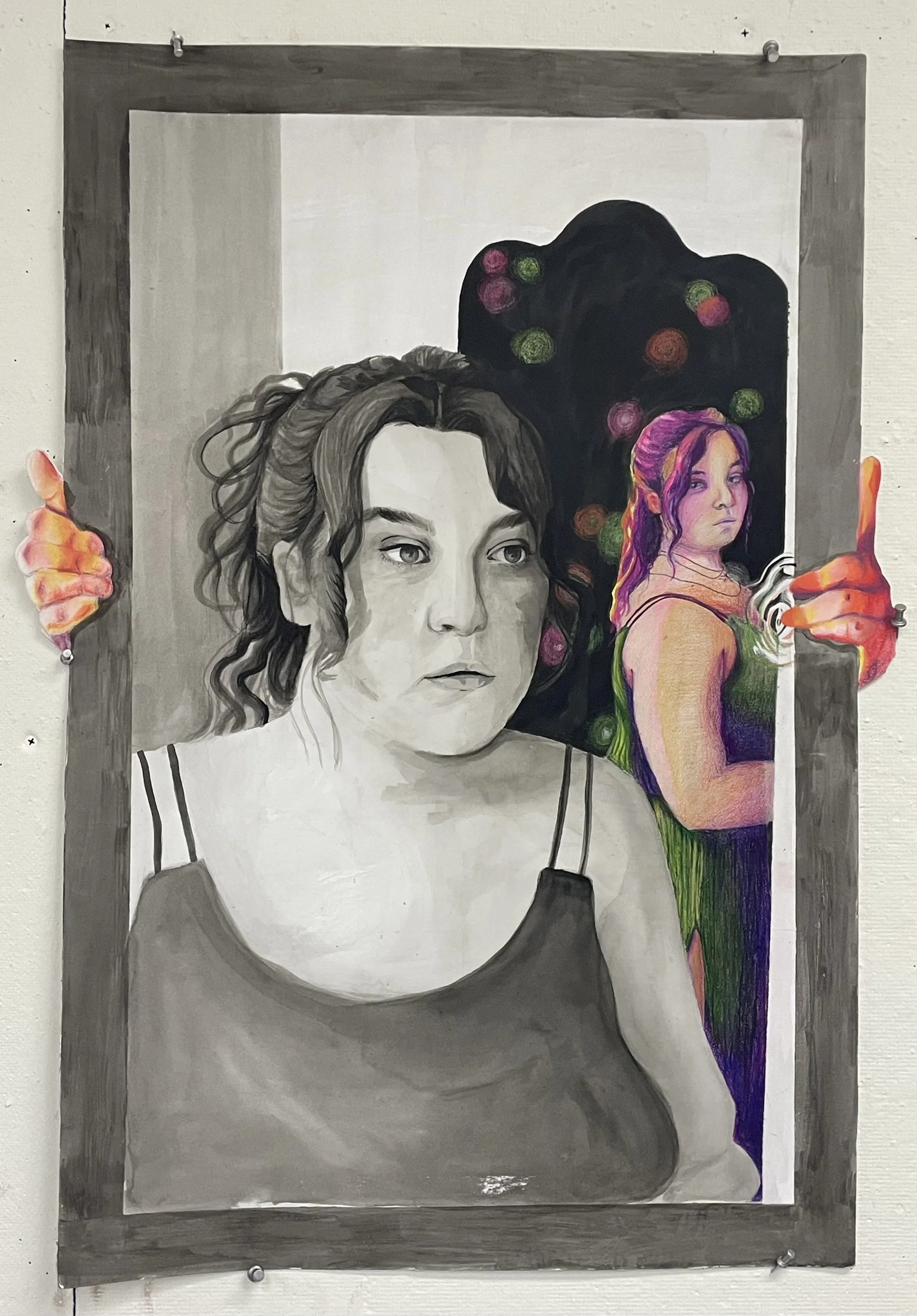 Portals to Self, 18” x 24”, ink, prisma color, chalk pastel, on cardstock
