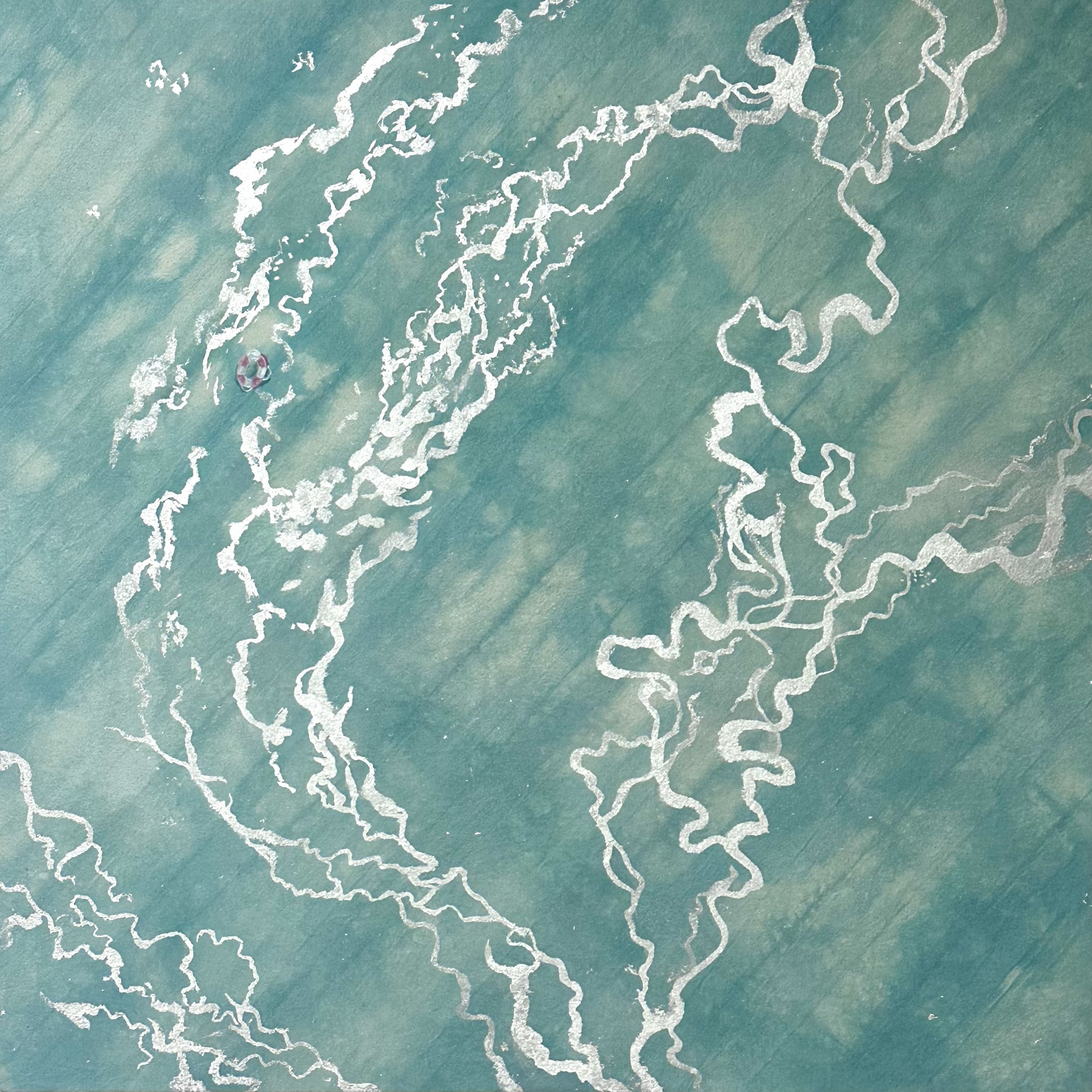 Set Adrift, 36”x36”, Silver Leaf on Dyed Canvas