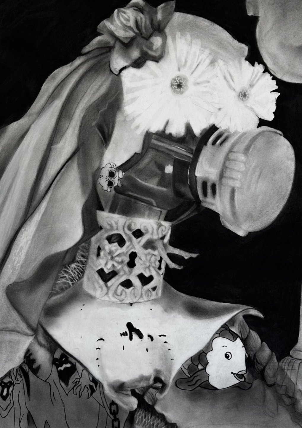 Poor Cast of the Net, 18” x 24”, charcoal on paper